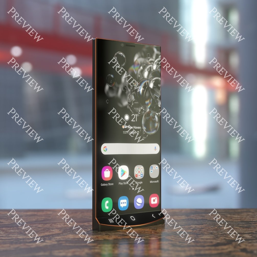 1 Rendering of an innovative self-standing mobile phone with a slanted base
