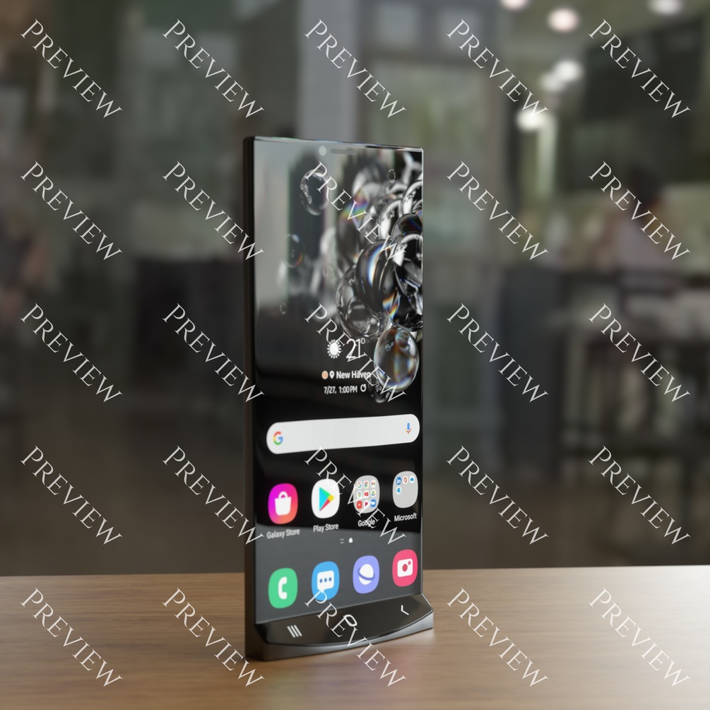 1 Rendering of an innovative self-standing mobile phone with a slanted base